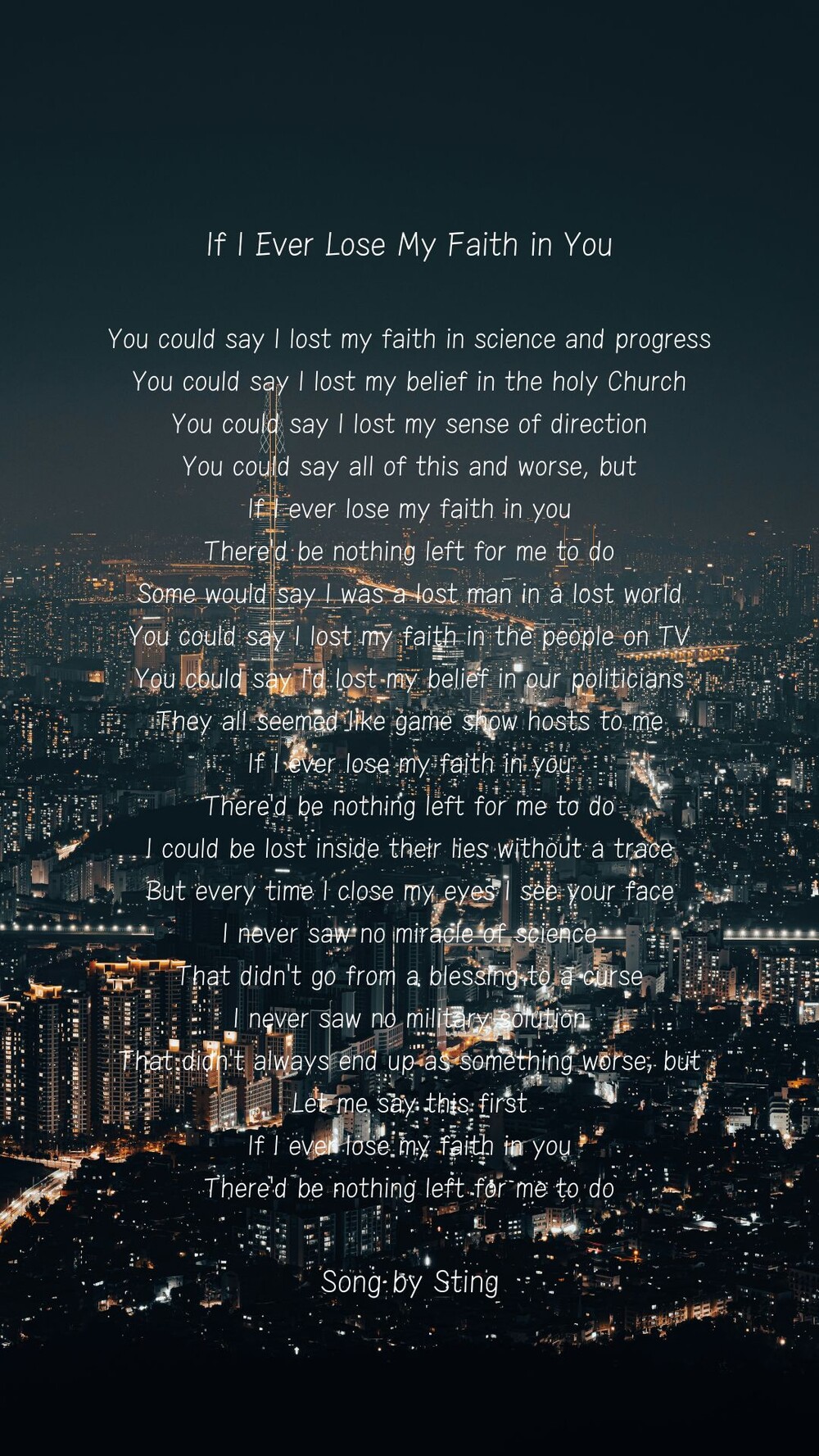 아래 영국 가수인 스팅의 노래 가사처럼 현대 사회의 과학 기술은 우리 삶에 기적과 축복을 주었지만, 더불어 현대 사회의 환경과 문화 속에 우리의 일상은 크고 작은 위험에 노출되어 우리의 건강은 위협 받습니다. 과거 30년 전에는 거의 존재하지 않았던 질병들이 이제는 보편화되고 있고 만성화되고 있습니다. 급성질병의 처방에 탁월한 주류 현대의학은 현대 사회의 만성화된 질병에는 큰 도움을 주지 못하는 실정에서, 아로마테라피는 우리 몸속에 사는 100명의 명의를 깨우는 대체 보완 요법으로 주목받고 있습니다.
