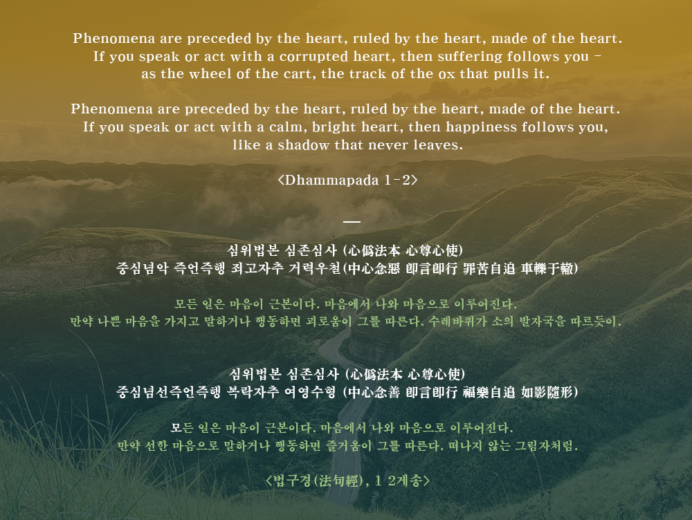 그런 점에서 불교를 영어로 익히는 것은 오히려 불교 용어를 간단하게 익힐 수 있는 방법이자, 영어와 한글로 교차하며 불교 용어와 경전을 학습함으로써 정교함을 깨우치는 즐거움을 줄 수 있는 방법입니다.